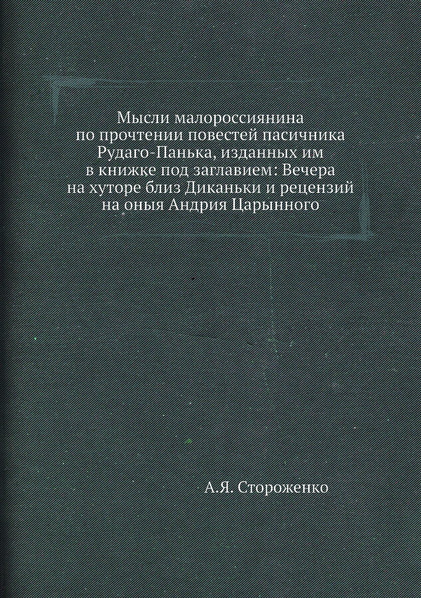 Книга Мысли малороссиянина по прочтении повестей пасичника Рудаго-Панька, изданных им в..., 2012