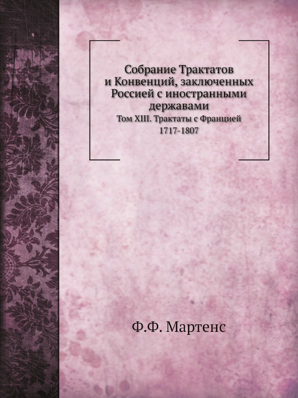 «Собрание Трактатов и Конвенций, заключенных Россией с иностранными державами» — публикация документов дипломатической истории России XVII-XX вв., изданная в 15 томах в 1874-1909 Ф. Ф. Мартенсом. «Собрание» включает документы о взаимоотношениях России с Австрией (и Австро-Венгрией) — т. 1-4; с Пруссией (Германией) — т. 5-8; с Англией — т. 9-12; с Францией — т. 13-15. Все документы воспроизведены на языке подлинника и даны в русском переводе. Каждому тому предпослано введение, многие тексты договоров снабжены комментариями. Собрание Мартенса являлось наиболее полной публикацией такого рода, многие соглашения и секретные статьи к ним были воспроизведены впервые. Книга представляет собой репринтное издание 1902 года.