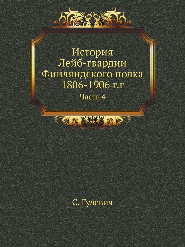 Эта книга - репринт оригинального издания 1907 года, созданный на основе электронной копии высокого разрешения, которую очистили и обработали вручную, сохранив структуру и орфографию оригинального издания. Редкие, забытые и малоизвестные книги, изданные с петровских времен до наших дней, вновь доступны в виде печатных книг. Фундаментальное пятитомное издание было приурочено к 100-летнему юбилею полка. Решение о подготовке данного труда было принято в октябре 1902 г. Богатый военно-исторический материал о боевом пути полка охватывает примерно 25 лет по каждому тому. Автором-составителем является С.А. Гулевич (1872–1918). С 1895 г. он служил в чине подпоручика Преображенского полка, а затем капитаном Финляндского полка. Был автором учебника для солдат и ряда изданий истории полка (1909, 1910 и 1913 гг.), дослужился до командира Финляндского полка и чина полковника. В своей работе он опирался на два предшествующих полковых изданий. Данное военно-историческое исследование подготовлено на высоком научном уровне, снабжено значительным количеством иллюстраций и повествует не только о действиях полка, но и развитии вооруженных сил России в течение целого столетия.