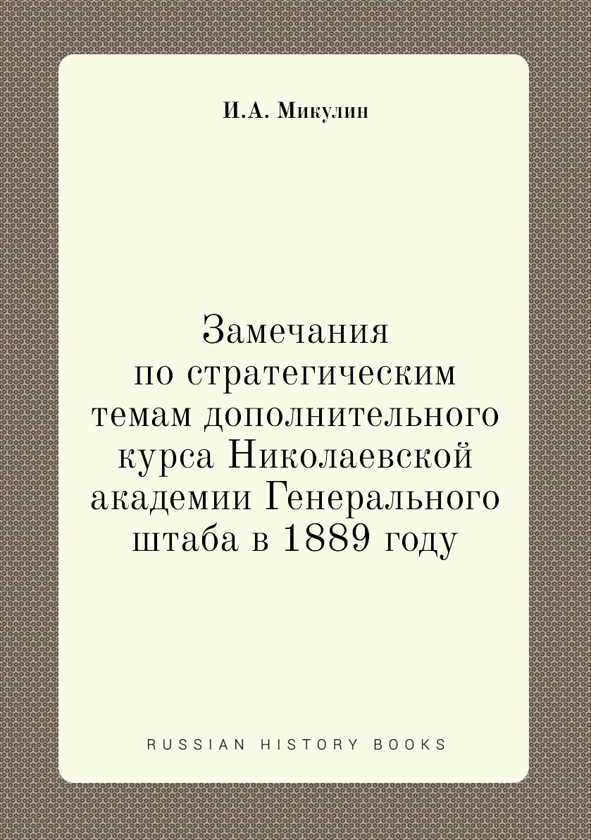 Эта книга — репринт оригинального издания (издательство "тип. Штаба войск гвардии и Петерб. воен. округа", 1909 год), созданный на основе электронной копии высокого разрешения, которую очистили и обработали вручную, сохранив структуру и орфографию оригинального издания. Редкие, забытые и малоизвестные книги, изданные с петровских времен до наших дней, вновь доступны в виде печатных книг._x000D_ _x000D_ Замечания по стратегическим темам дополнительного курса Николаевской академии Генерального штаба в 1889 году : М.И. Драгомирова, А.Н. Куропаткина, А.К. Пузыревского, Д.А. Никельна, М.А. Газенкампфа, П.К. Гудим-Левковича, Н.Н. Сухотина, К.Н. Дурона, П.О. Щ