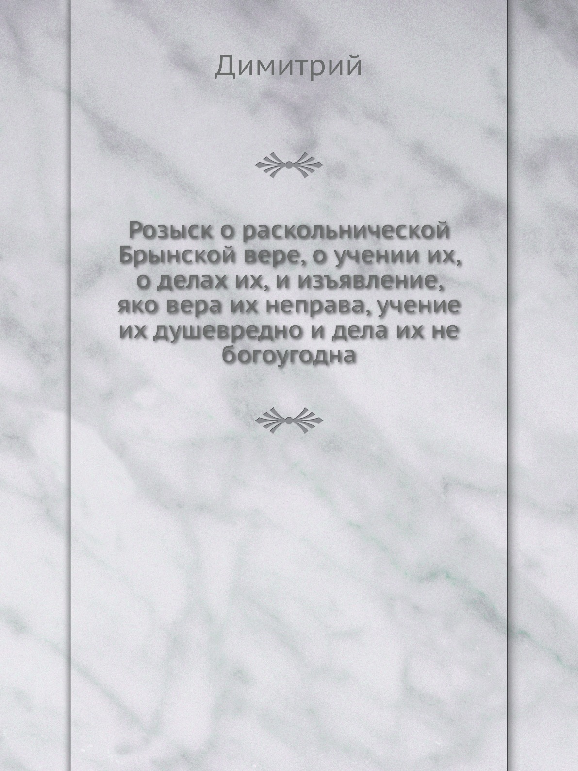 Книга Розыск о раскольнической Брынской вере, о учении их, о делах их, и изъявление, як...