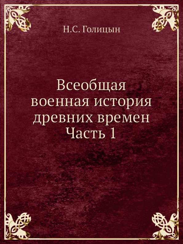 Эта книга - репринт оригинального издания 1872 года, созданный на основе электронной копии высокого разрешения, которую очистили и обработали вручную, сохранив структуру и орфографию оригинального издания. Редкие, забытые и малоизвестные книги, изданные с петровских времен до наших дней, вновь доступны в виде печатных книг. Впервые издана в Петербурге в 1872-1878 гг. Свой капитальный труд «Всеобщая военная история» в 15 томах князь Николай Сергеевич Голицын создал в 1838-47 годах в период профессорско-преподавательской работы в Императорской военной академии, где он руководил кафедрой стратегии и затем - военной истории. На протяжении двадцати лет со времени учреждения академии не существовало учебного пособия на русском языке по военной истории. Голицын, с разрешения академического и высшего начальства, делает первый шаг к восполнению недостатка в военной литературе. Работа Голицына явилась первой в России и Европе попыткой полного систематического изложения всеобщей военной истории и задумывалась автором как руководство к преподаванию и изучению этого предмета. «Всеобщая военная история» представляет собой полный и подробный обзор войн и походов великих полководцев, военно-исторических событий в необходимой связи с современной автору историей: политической, военного искусства, искусства и науки ведения войны и военной литературы. «Всеобщая военная история древних времен» состоит из двух частей. Первая посвящена историческим событиям от древнейших времен до смерти Александра Великого (232 г. до н. э.). Вторая часть рассказывает об истории следующего периода - от смерти Александра Великого до падения Западной Римской Империи (323 г. до н. э. - 476 г. н. э.).