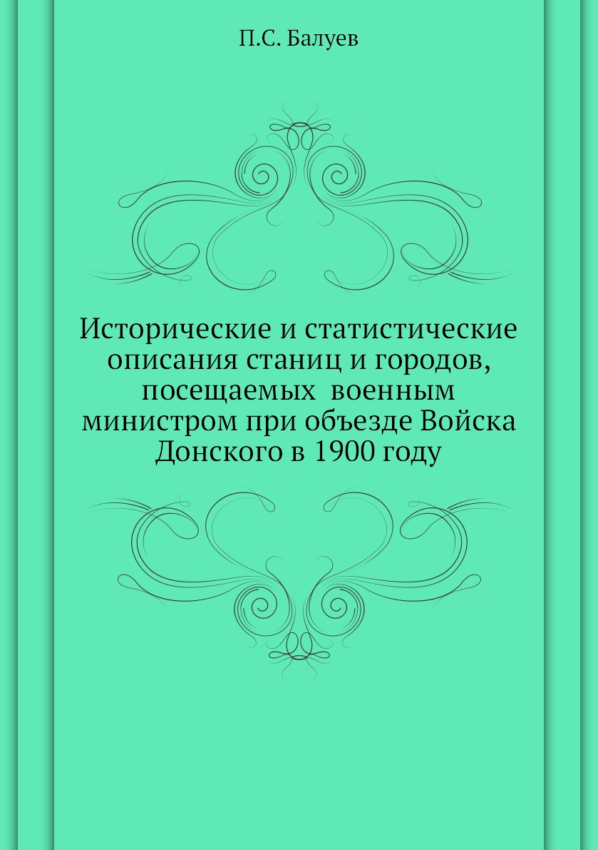 Эта книга — репринт оригинального издания (издательство "Обл. Войска Донск. тип.", 1900 год), созданный на основе электронной копии высокого разрешения, которую очистили и обработали вручную, сохранив структуру и орфографию оригинального издания. Редкие, забытые и малоизвестные книги, изданные с петровских времен до наших дней, вновь доступны в виде печатных книг._x000D_ _x000D_ Исторические и статистические описания станиц и городов, посещаемых г. военным министром при объезде его превосходительством Области Войска Донского в 1900 году. Составлено Генерального штаба полковником. П.С. Балуевым.Новочеркасск : Областная Войска Донского типография, 1900.