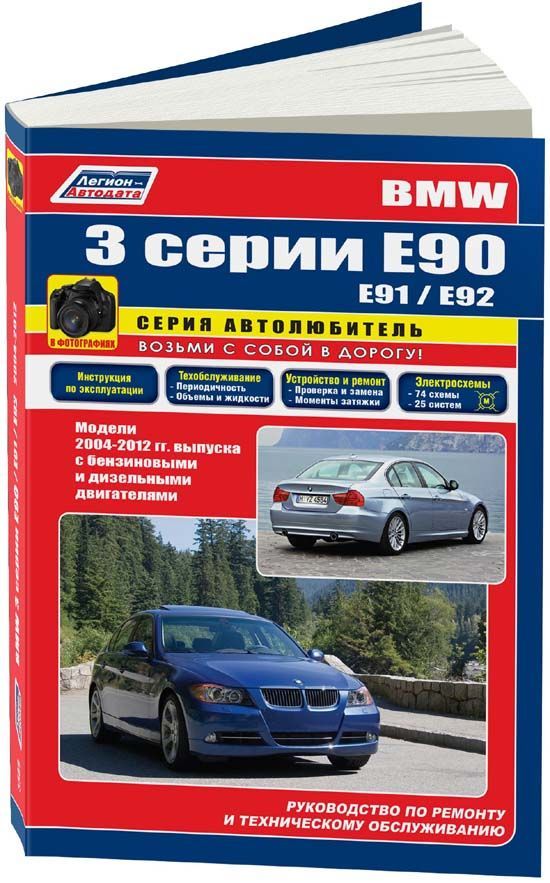 В руководстве дается пошаговое описание процедур по эксплуатации, ремонту и техническому обслуживанию автомобилей BMW 3 серии с кузовом Е90 выпуска с 2004 г., оборудованных бензиновыми двигателями N42B20 (2.0 л.), N45B20 (2.0 л.), N46B20 (2.0 л.), N52B25 (2.5 л.), N52B30 (3.0 л.), N54B30 (3.0 л.) и дизельными двигателями M47 2T (2.0 л.), M57 2TB30 (3.0 л.) Издание содержит руководство по эксплуатации, сведения по проверке элементов системы управления бензиновыми и дизельными двигателями, рекомендации по регулировке и ремонту элементов систем двигателя, механических и автоматических коробок передач, тормозной системы, рулевого управления и подвески. Представлены электросхемы для различных вариантов комплектаций. Приведены возможные неисправности и методы их устранения, сопрягаемые размеры основных деталей и пределы их допустимого износа, рекомендуемые смазочные материалы и рабочие жидкости. Книга предназначена для автовладельцев, персонала СТО и ремонтных мастерских. Эта книга может быть использована при ремонте двигателей, коробок передач, тормозной системы, подвески, рулевого управления, и электрооборудования автомобилей BMW 3 серии E91, E92, E93 выпуска с 2005 года.