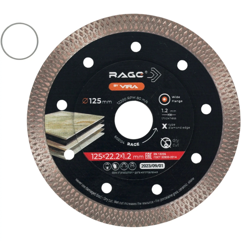 Диск алмазный по керамограниту Rage XT125 125x22.2x1.1 мм