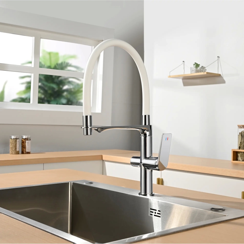 Смеситель кухонный Delinia Нея высота 47.8 см с фильтром цвет хром/белый