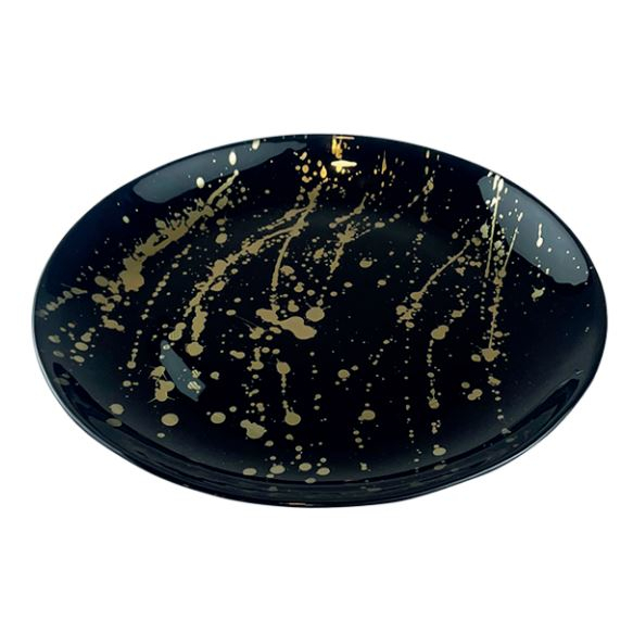 Тарелка выполнена в элегантном черном цвете с золотистой россыпью.