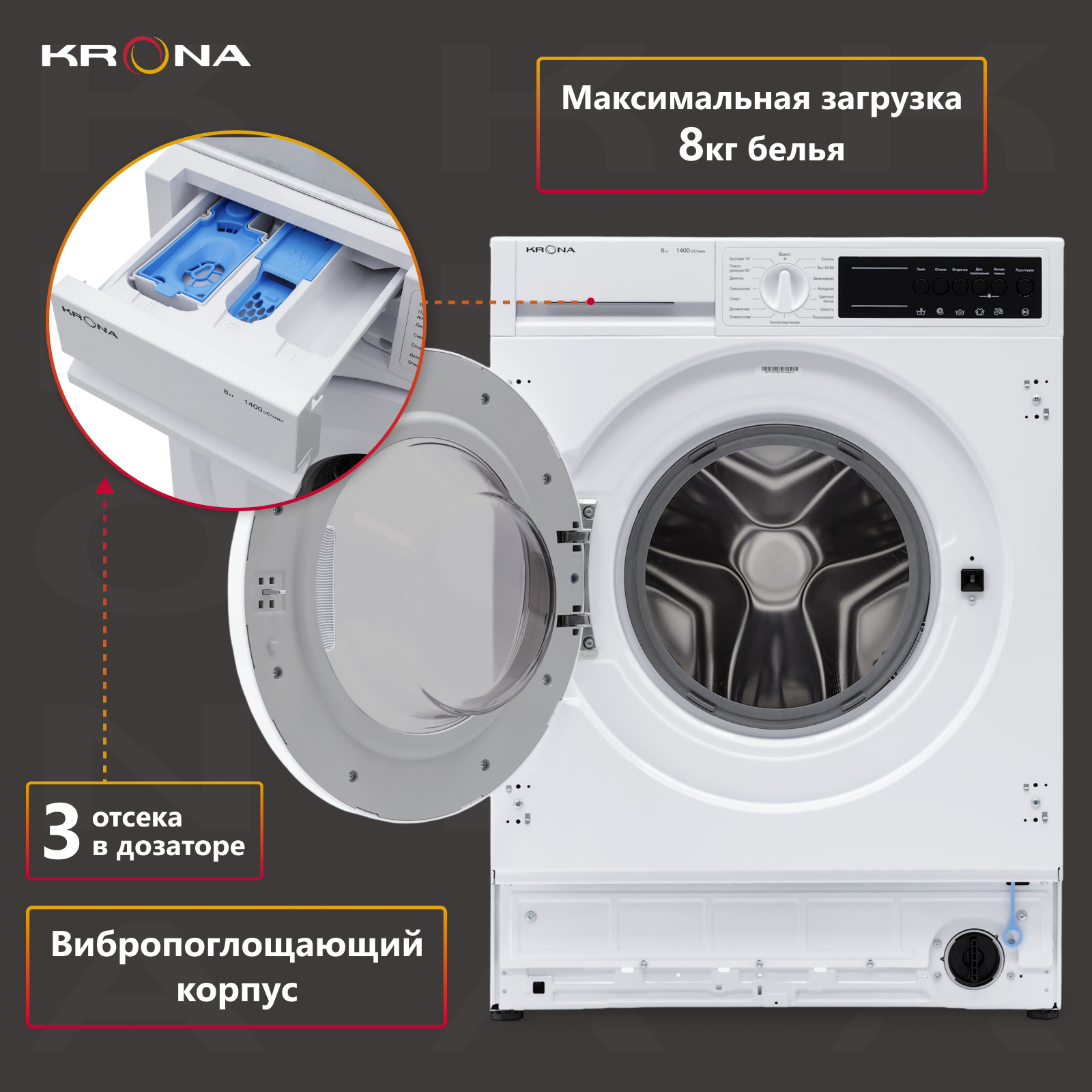 Встраиваемая стиральная машина Krona ZIMMER 1400 8K WHITE