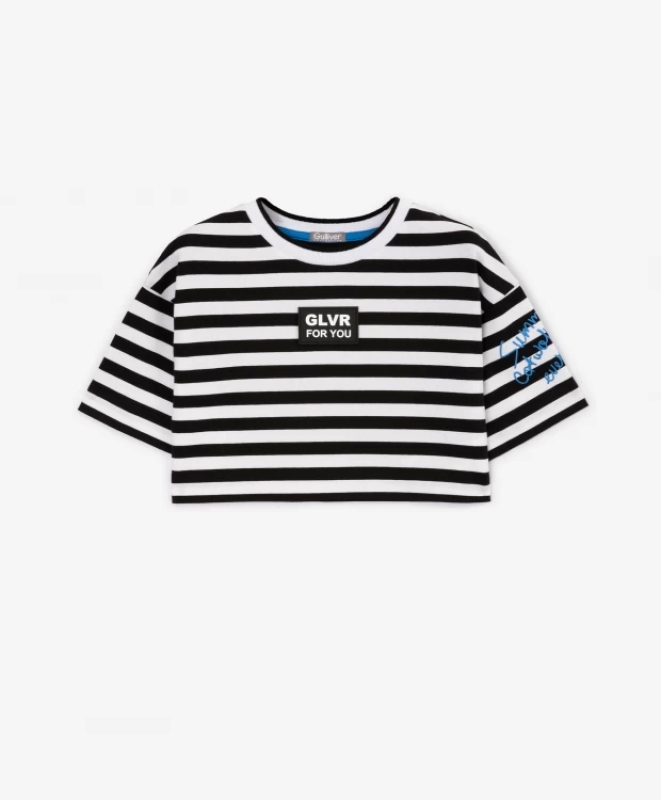 Укороченная полосатая футболка силуэта оверсайз Gulliver (128)