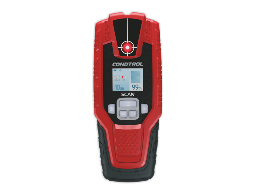 Детектор проводки CONDTROL Scan предназначен для обнаружения в стенах, потолках и полах металлов (черных и цветных металлов, например, арматурной стали), деревянных балок, а также электрокабелей под напряжением.
