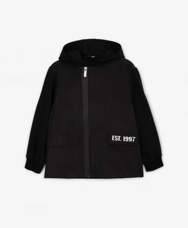 Пиджак с асимметричной застежкой, построенная на сочетании футера и плащовки Gulliver (140) детям