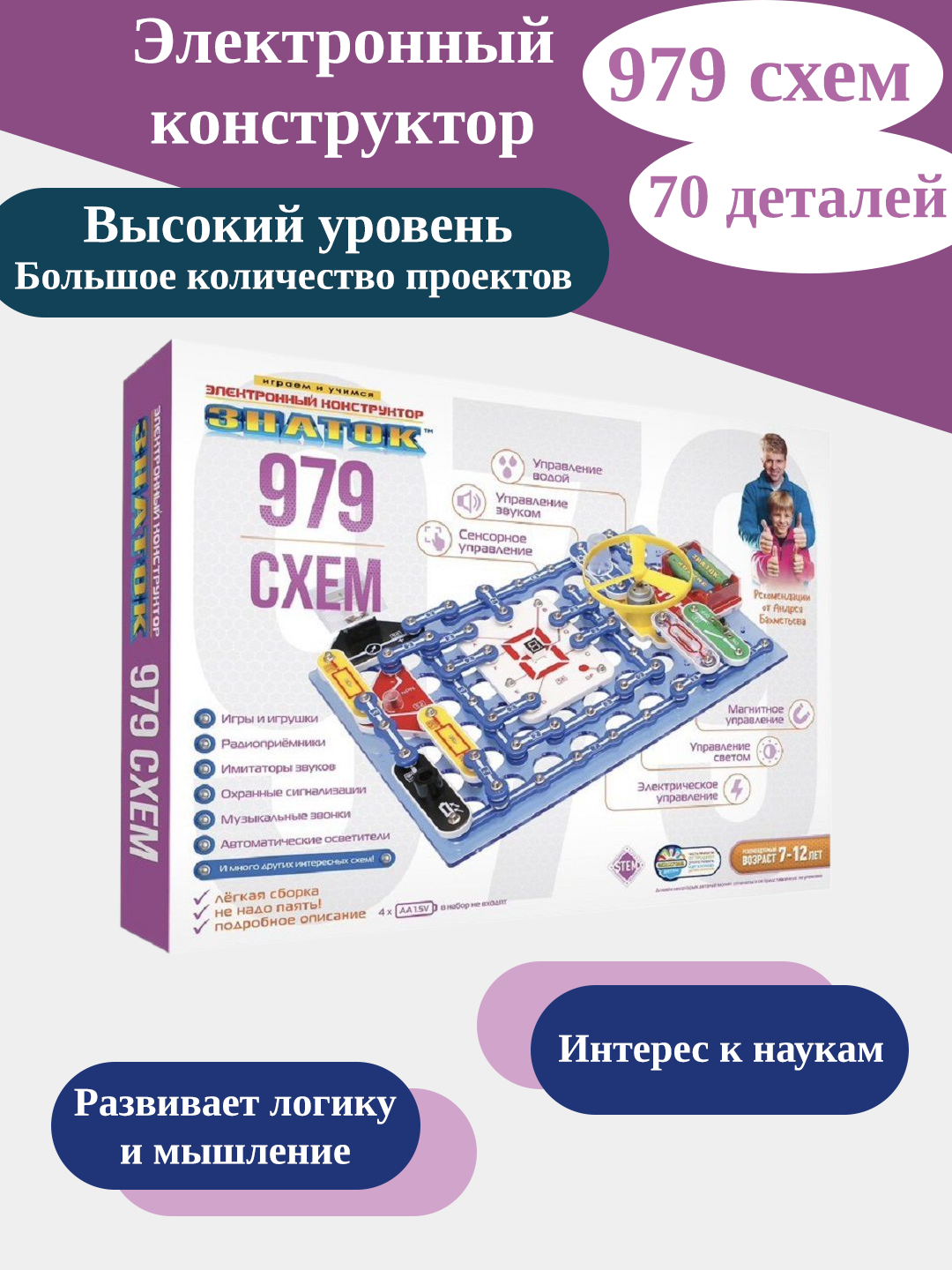Электронный конструктор ЗНАТОК (999 схем) от 5 до 55 лет Для школы и дома Сборка без пайки