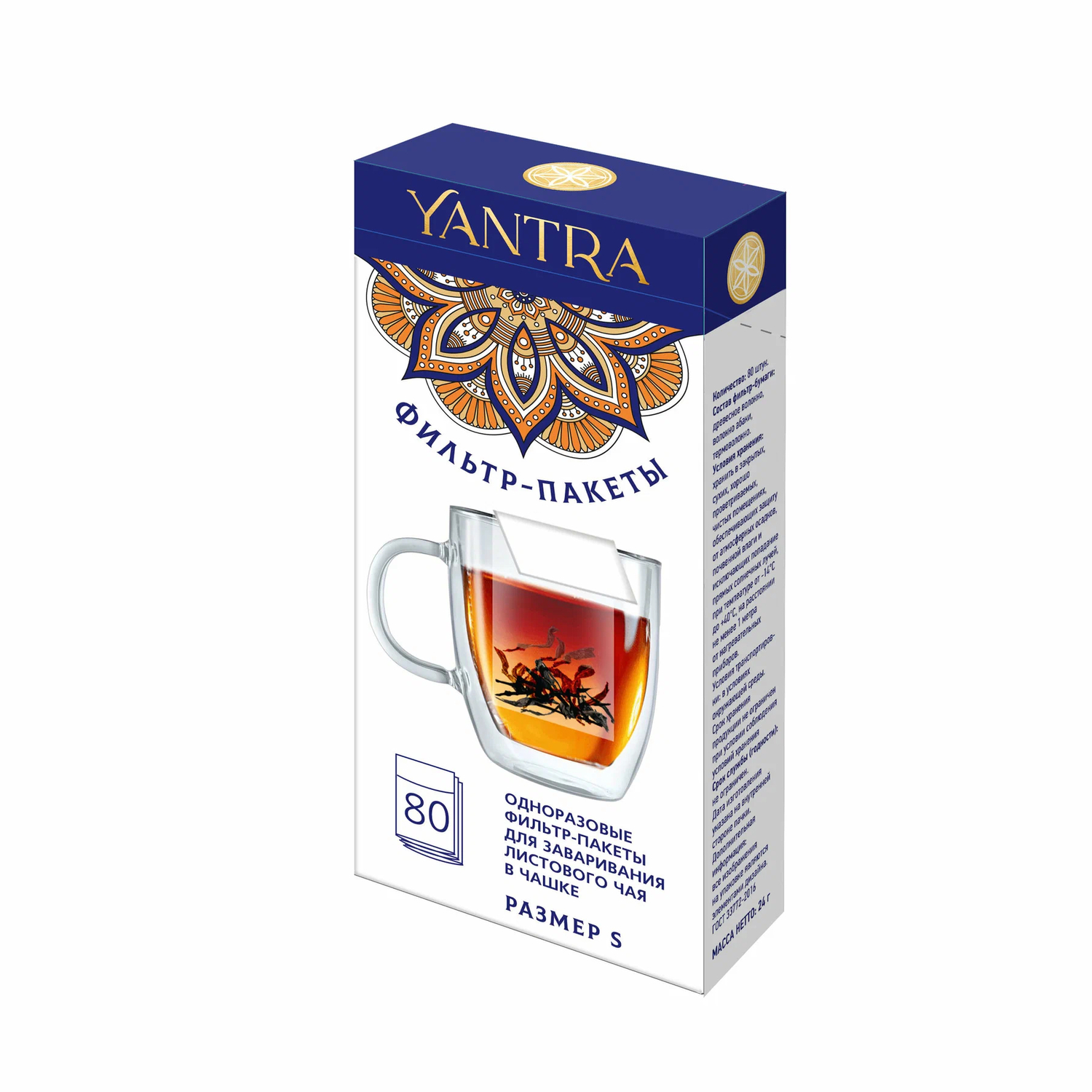 Фильтр-пакеты “Янтра” предназначены для заваривания всех видов чаев: черных, зеленых, травяных, тизанов. В любом объеме: от чашки на 200 мл до чайника 1 л. Они изготовлены из экологически чистых материалов природного происхождения, не содержат хлор и не влияют на вкус любимого напитка. Все материалы упаковки подлежат вторичной переработке. Одноразовые фильтр-пакеты РАЗМЕР S Для заваривания в чашке или кружке на 200-250 мл, 80 шт.