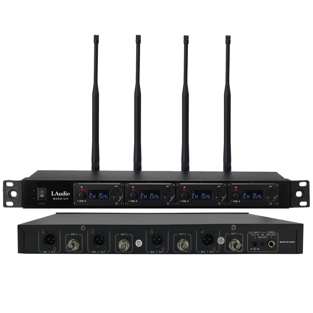 Беспроводная конференц-система, 4 ручных микрофона, LAudio. 4-канальная беспроводная микрофонная система состоит из 4 наборов независимых модулей УВЧ-приемников с частотами 478-638 МГц. Система предназначена для корпоративных мероприятий, живых музыкальных выступлений, учреждений высшего образования. 1 приемник и 4 ручных передатчика. Режим автоматического выбора канала. Индикаторы мощности радиочастотного и аудио сигнала. Опция блокировки управления для защиты от случайных или несанкционированных изменений.
