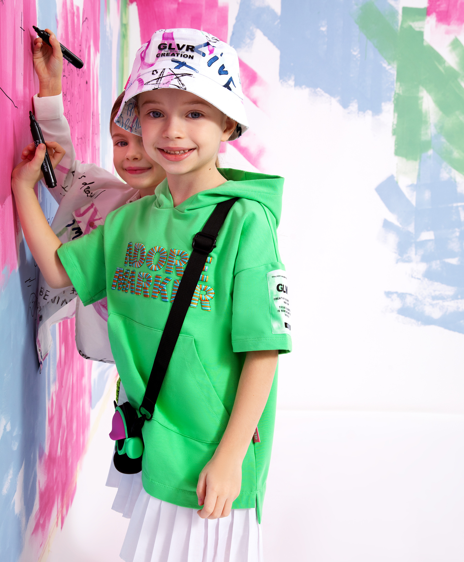 Платье из тонкого футера с капюшоном зеленое Gulliver (104) детям