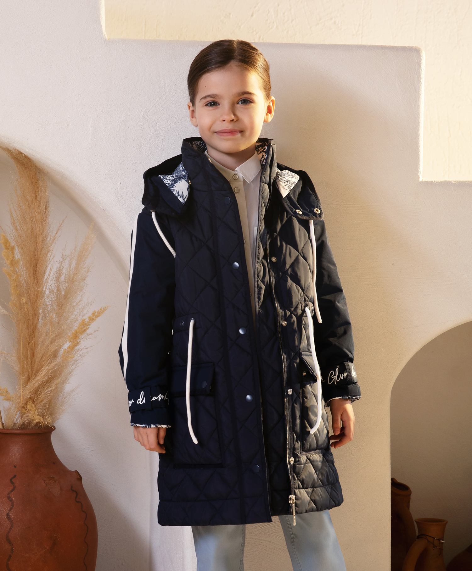 Пальто демисезонное стеганое из плащовки синее Gulliver (110)