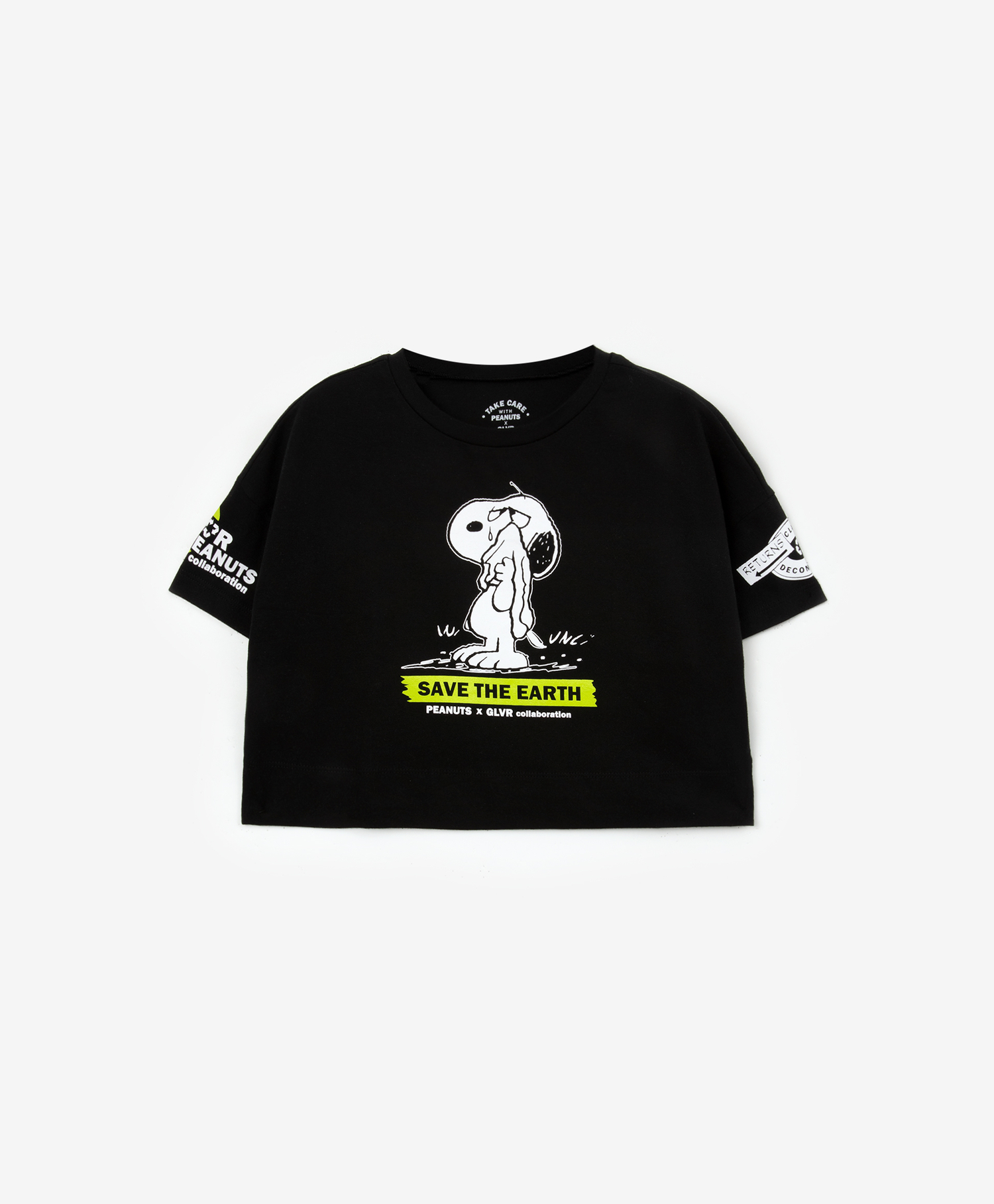 Футболка оверсайз с принтом Спаси Планету черная Gulliver (110)