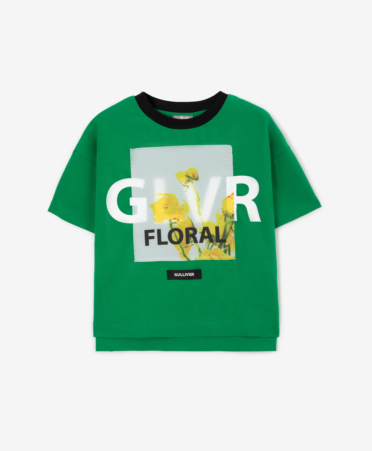 Футболка с оригинальным декором зеленая для девочки Gulliver (128)