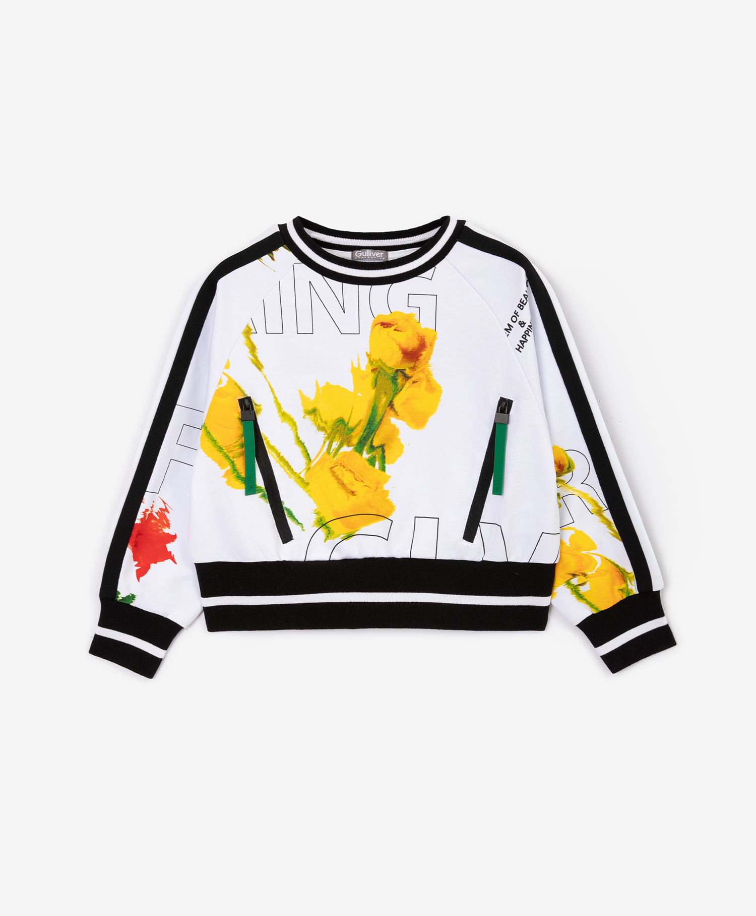 Свитшот с ярким цветочным рисунком белый для девочки Gulliver (98) детям