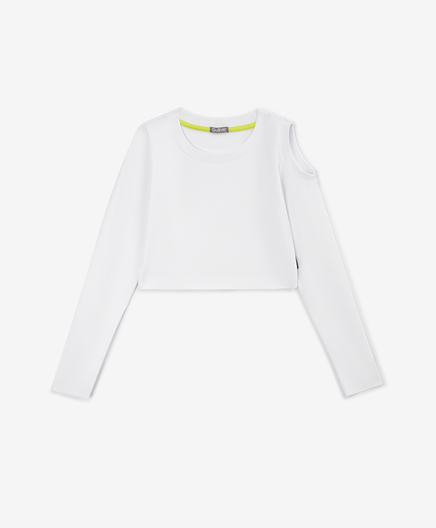 Кроп-топ с "каплей", обнажающей плечо белая для девочки Gulliver (152)