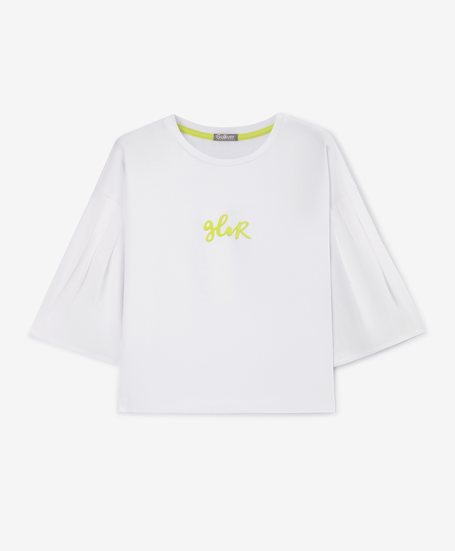 Футболка силуэта оверсайз с объемными текстильными рукавами белая для девочки Gulliver (164) детям