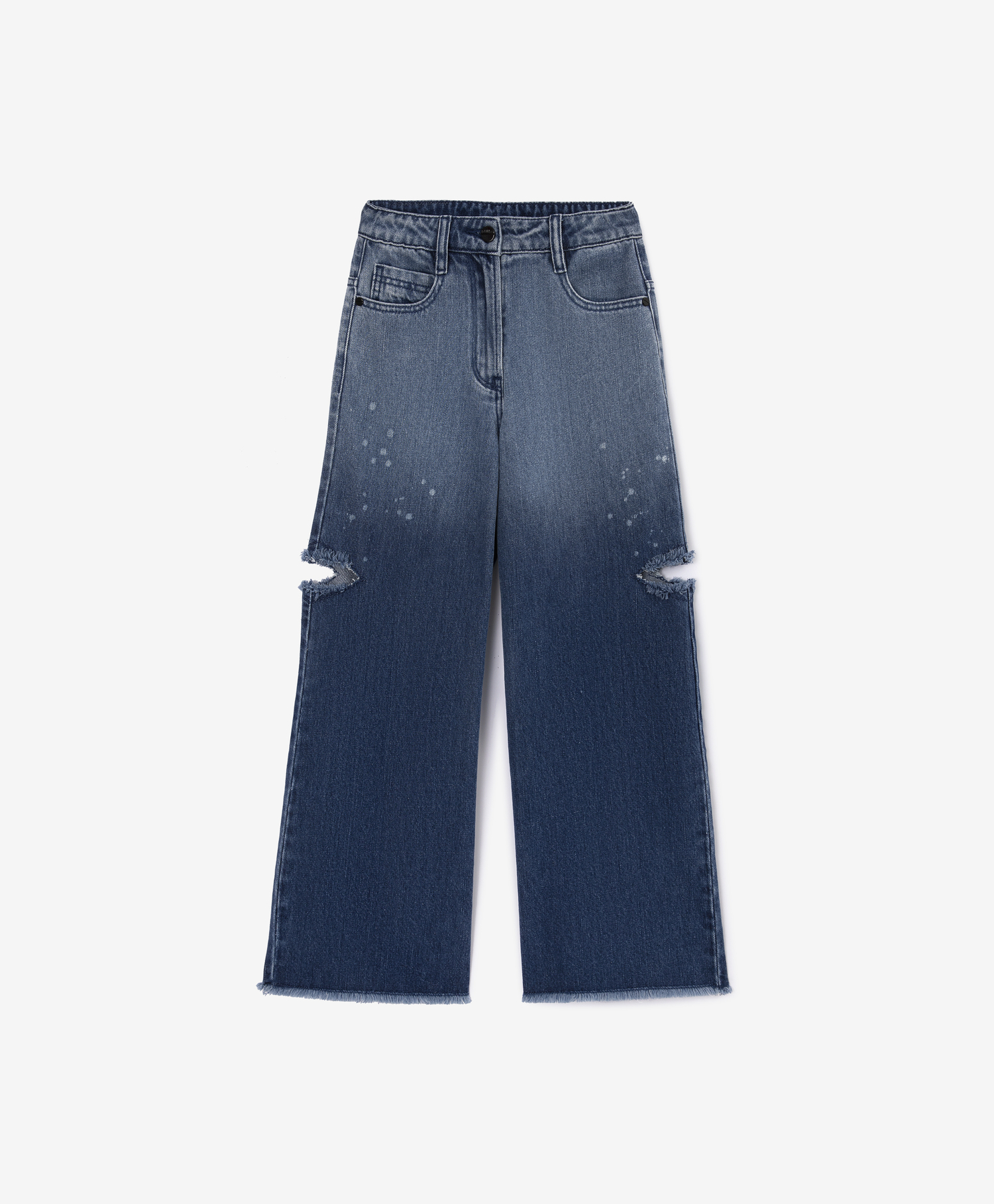 Джинсы силуэта палаццо с дестрой эффектом синие для девочек Gulliver (164) детям