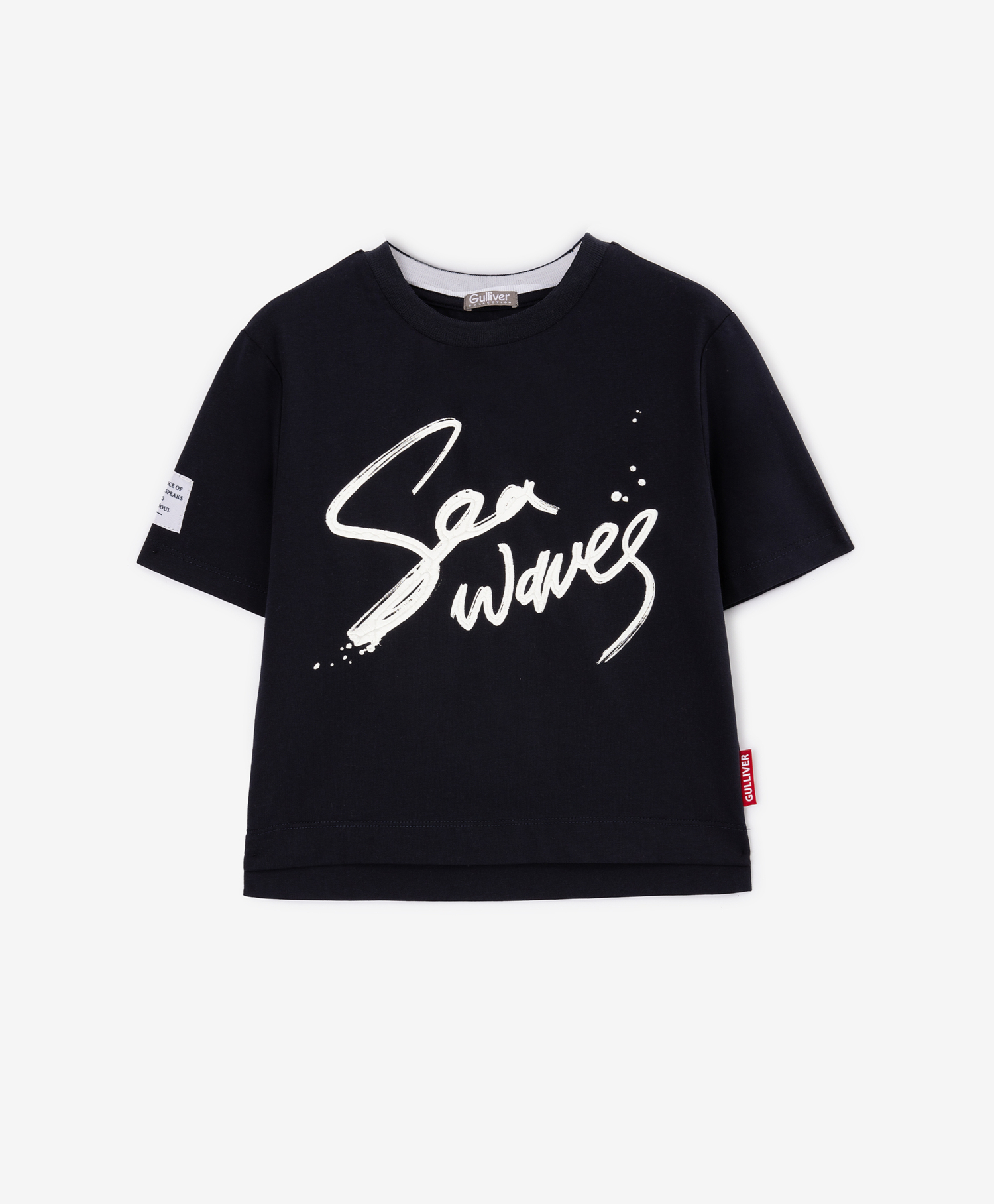 Футболка с оригинальным принтом синяя для мальчика Gulliver (122) детям