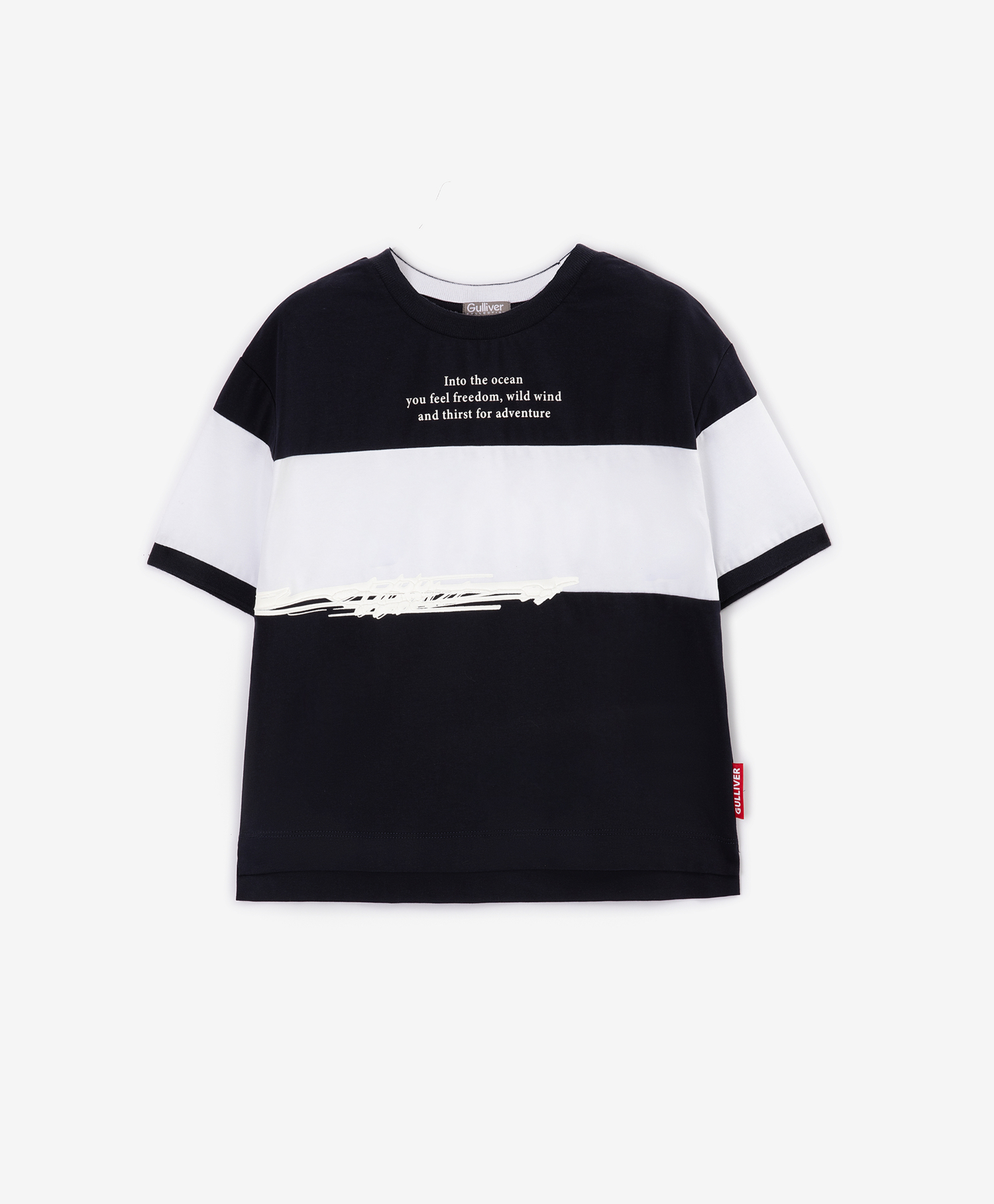 Футболка с коротким рукавом в морском стиле синяя для мальчика Gulliver (104) детям