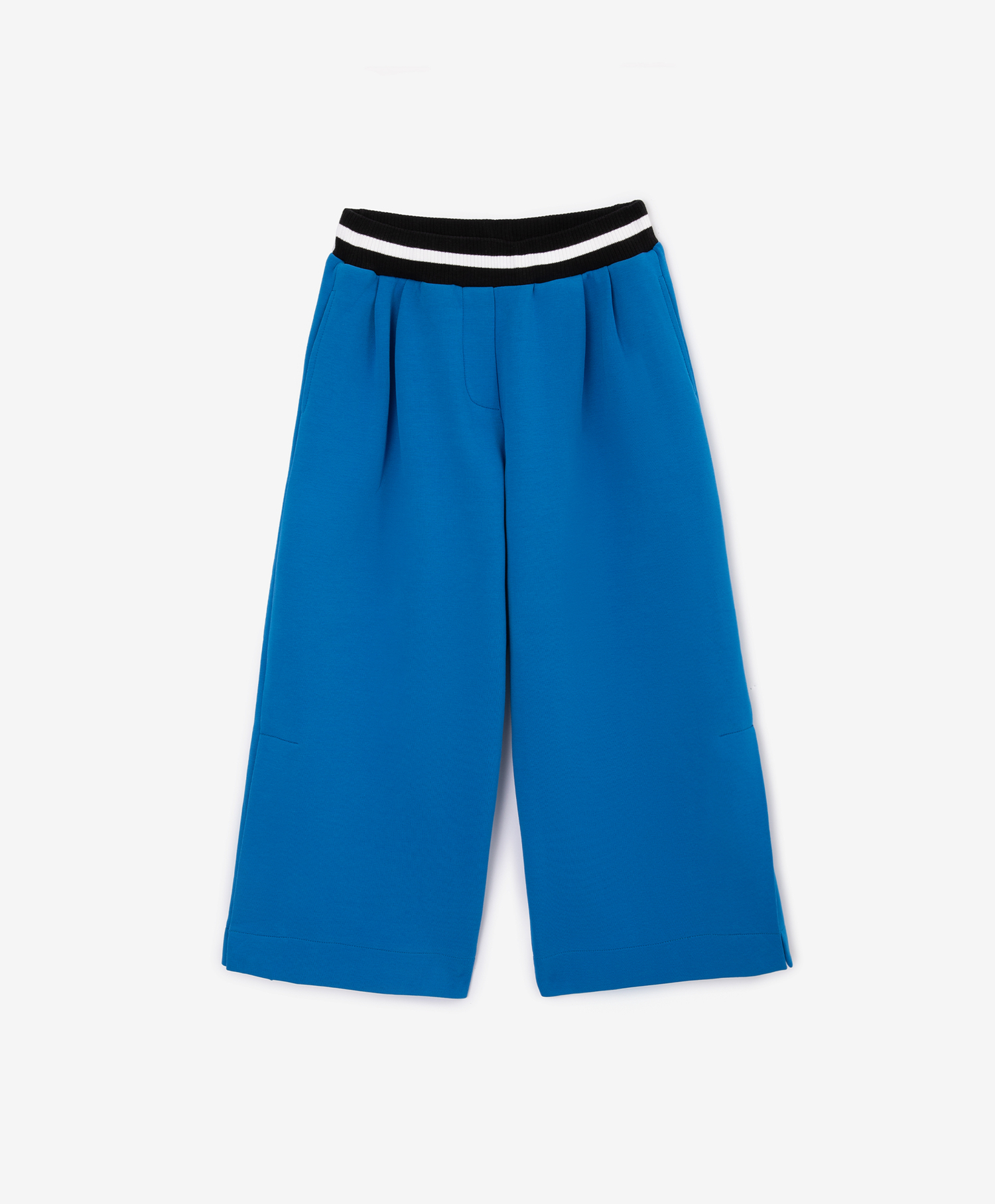 Брюки трикотажные силуэта палаццо с высокими шлицами в боковых швах синие для девочек Gulliver (98) детям