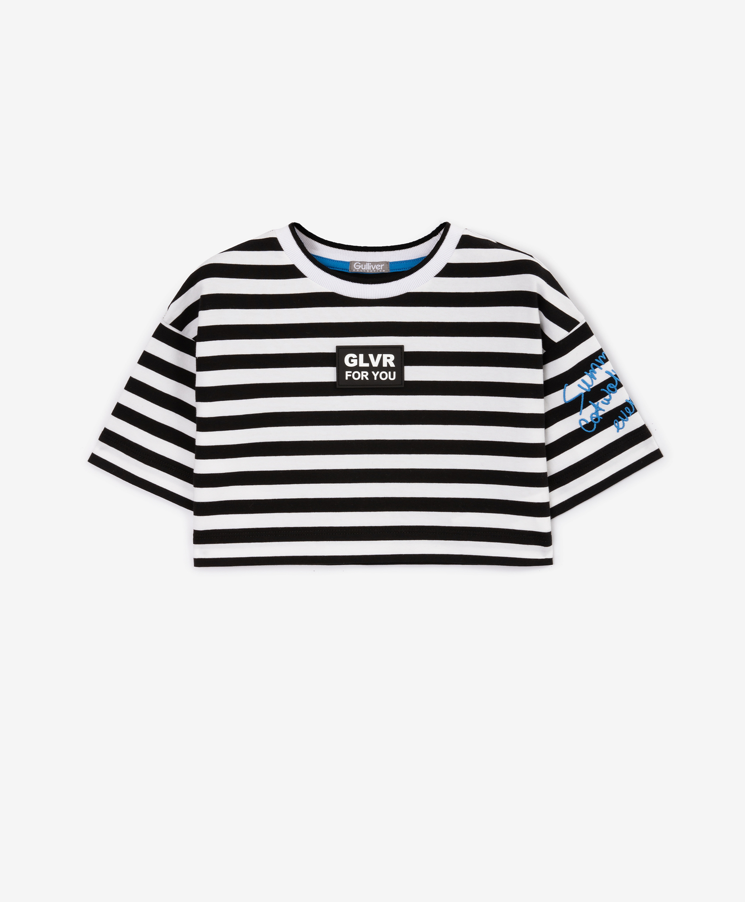 Футболка укороченная силуэта оверсайз полосатая белая для девочки Gulliver (98) детям