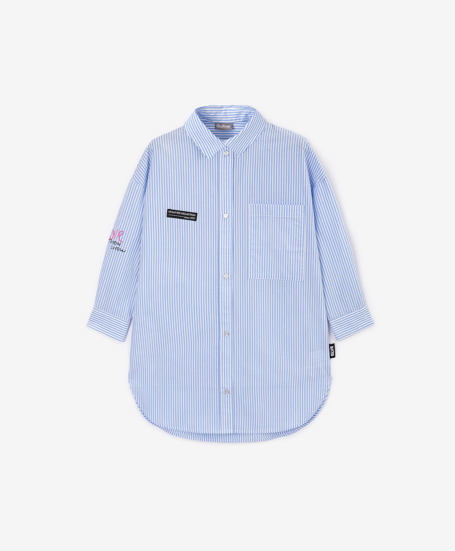 Платье в полоску рубашечного кроя голубое для девочки Gulliver (122)