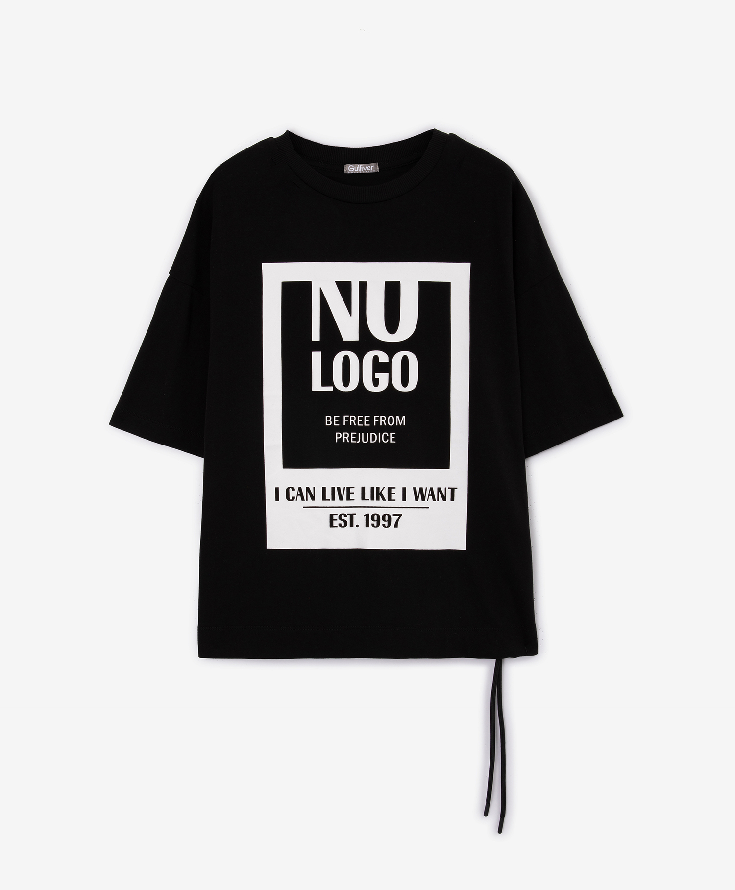 Футболка с оригинальным съемным шнуром черная для мальчика Gulliver (158) детям