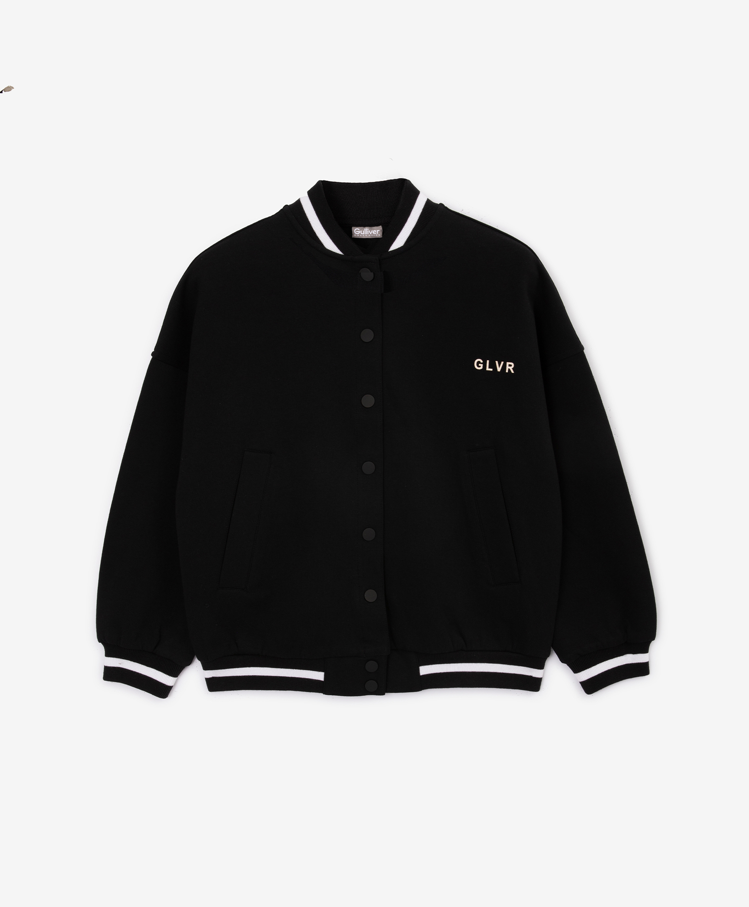 Толстовка-бомбер из интерлока черная для девочки Gulliver (170)