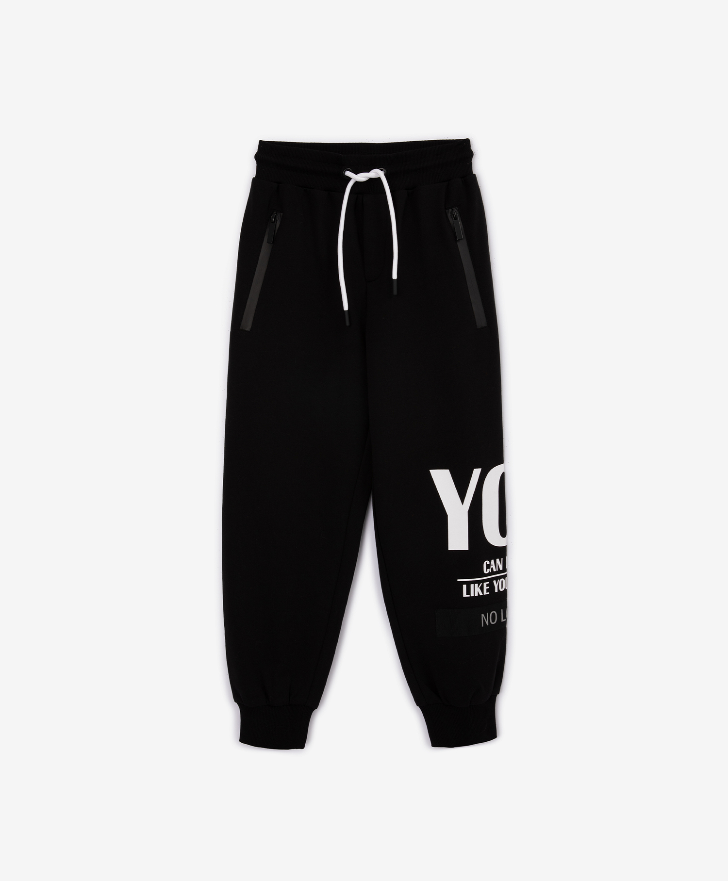 Брюки-джоггеры трикотажные с контрастной отделкой черные для мальчика Gulliver (152)