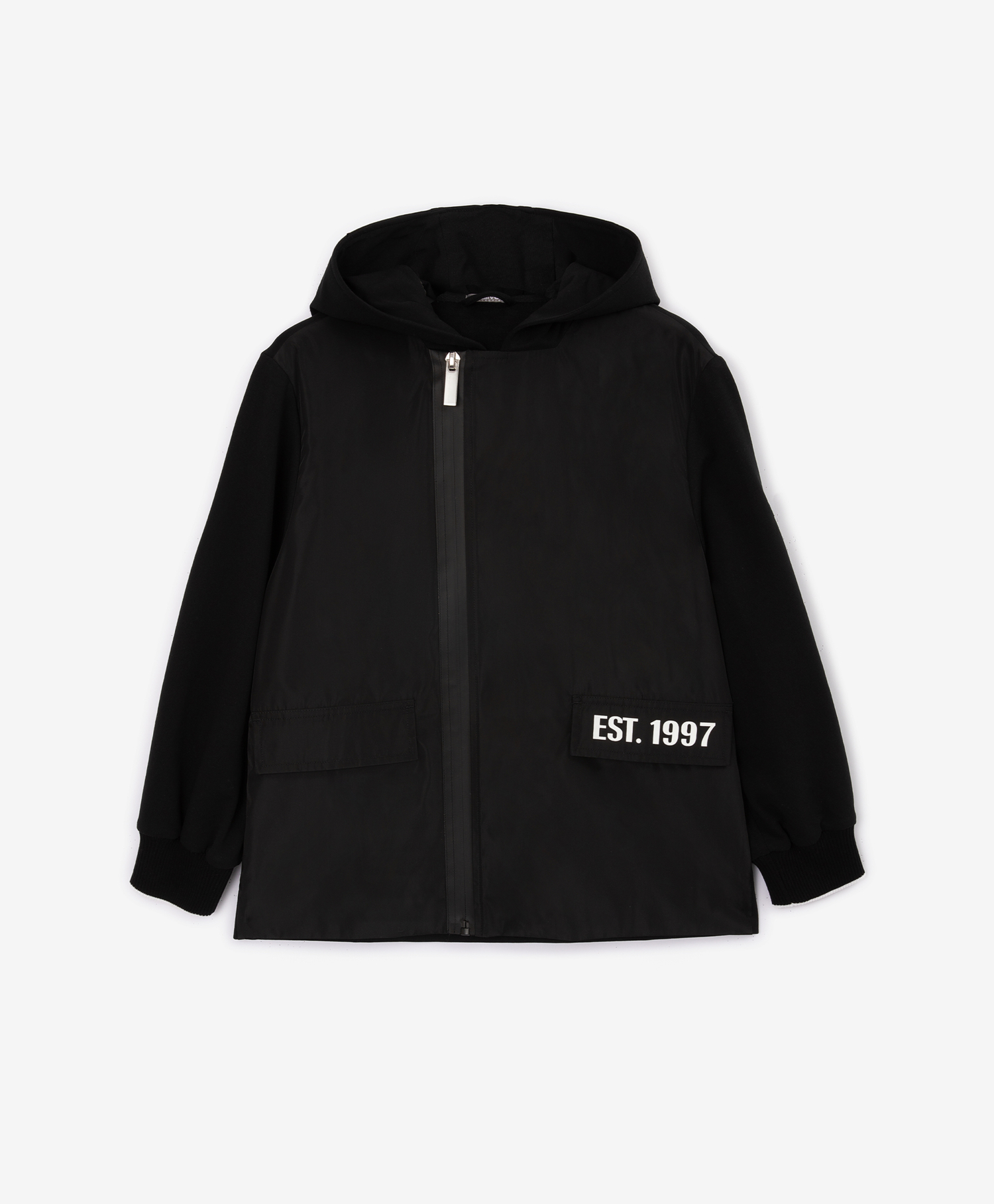 Пиджак с асимметричной застежкой из футера и плащовки черный для мальчика Gulliver (146) детям