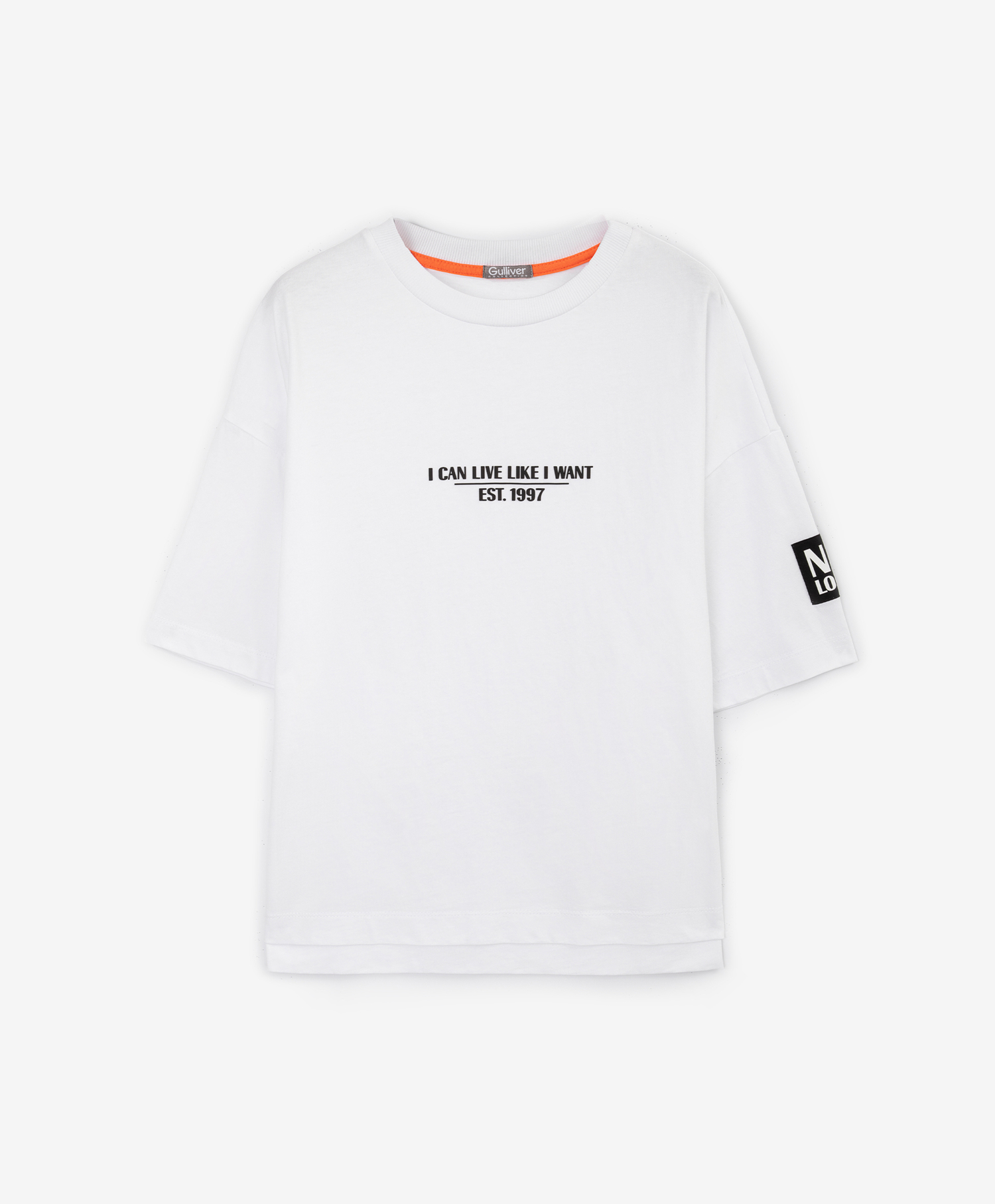 Футболка свободной объемной формы с лаконичным декором белаяGulliver (158)