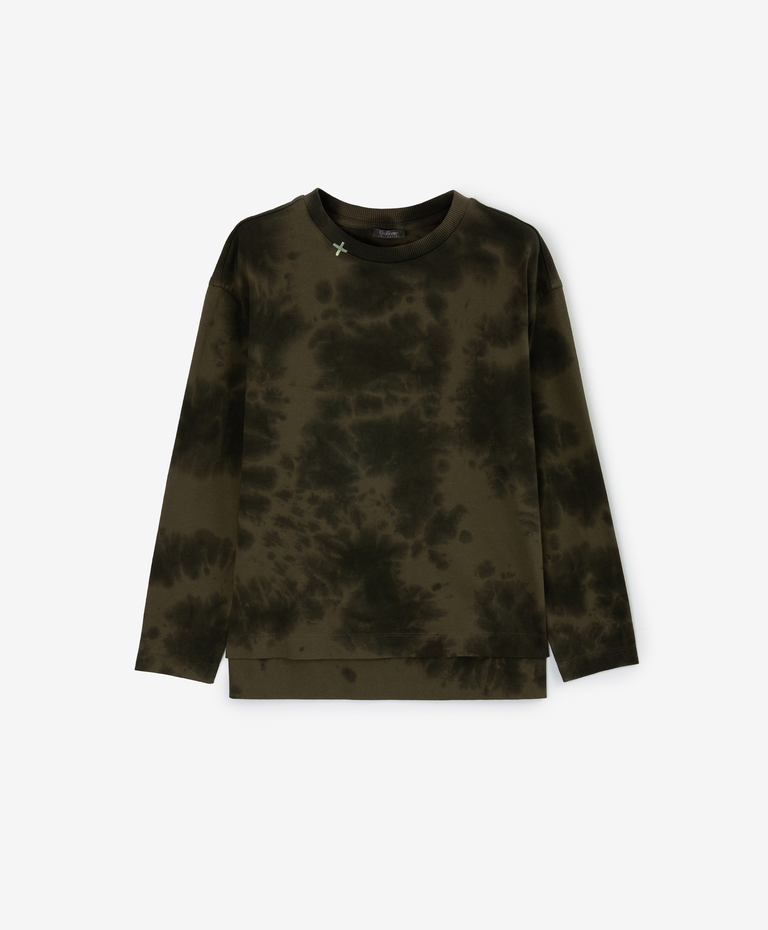 Футболка с крашением тай-дай (tie-dye) цвета хаки для мальчика Gulliver (140) детям
