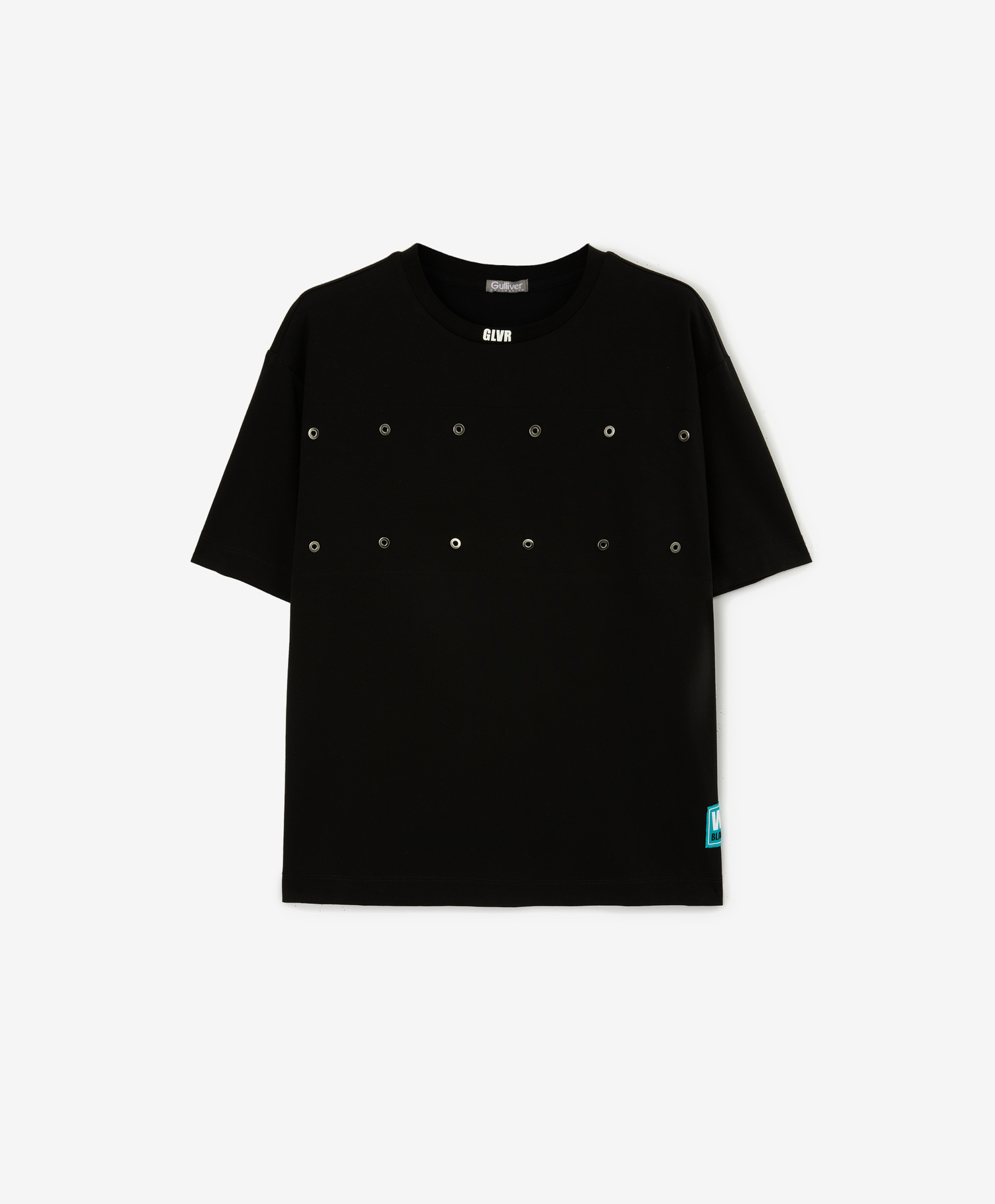 Футболка с люверсами черная для мальчика Gulliver (140)