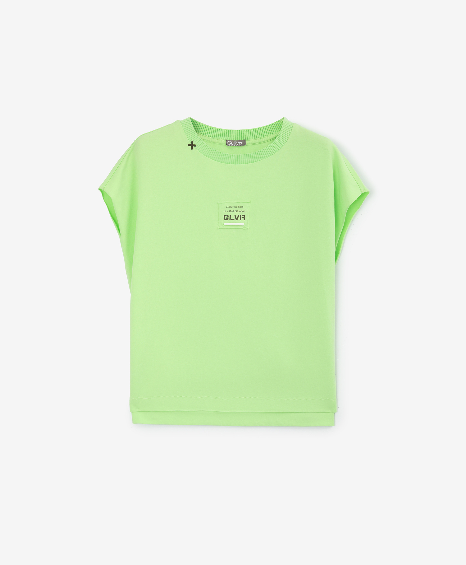 Майка яркая с открытыми срезами по линии проймы зеленая для мальчика Gulliver (146)