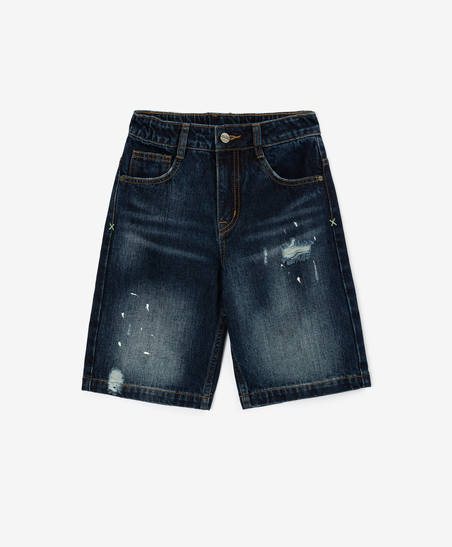 Шорты джинсовые с варкой, потертостями, повреждениями синие для мальчика Gulliver (164) детям