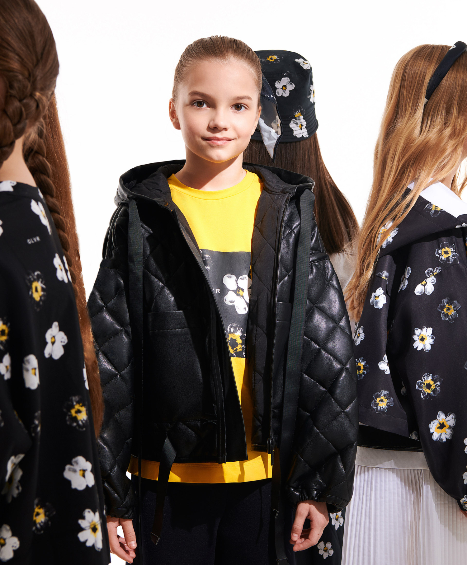 Куртка стеганая силуэта оверсайз из экокожи черная для девочек Gulliver (158) детям