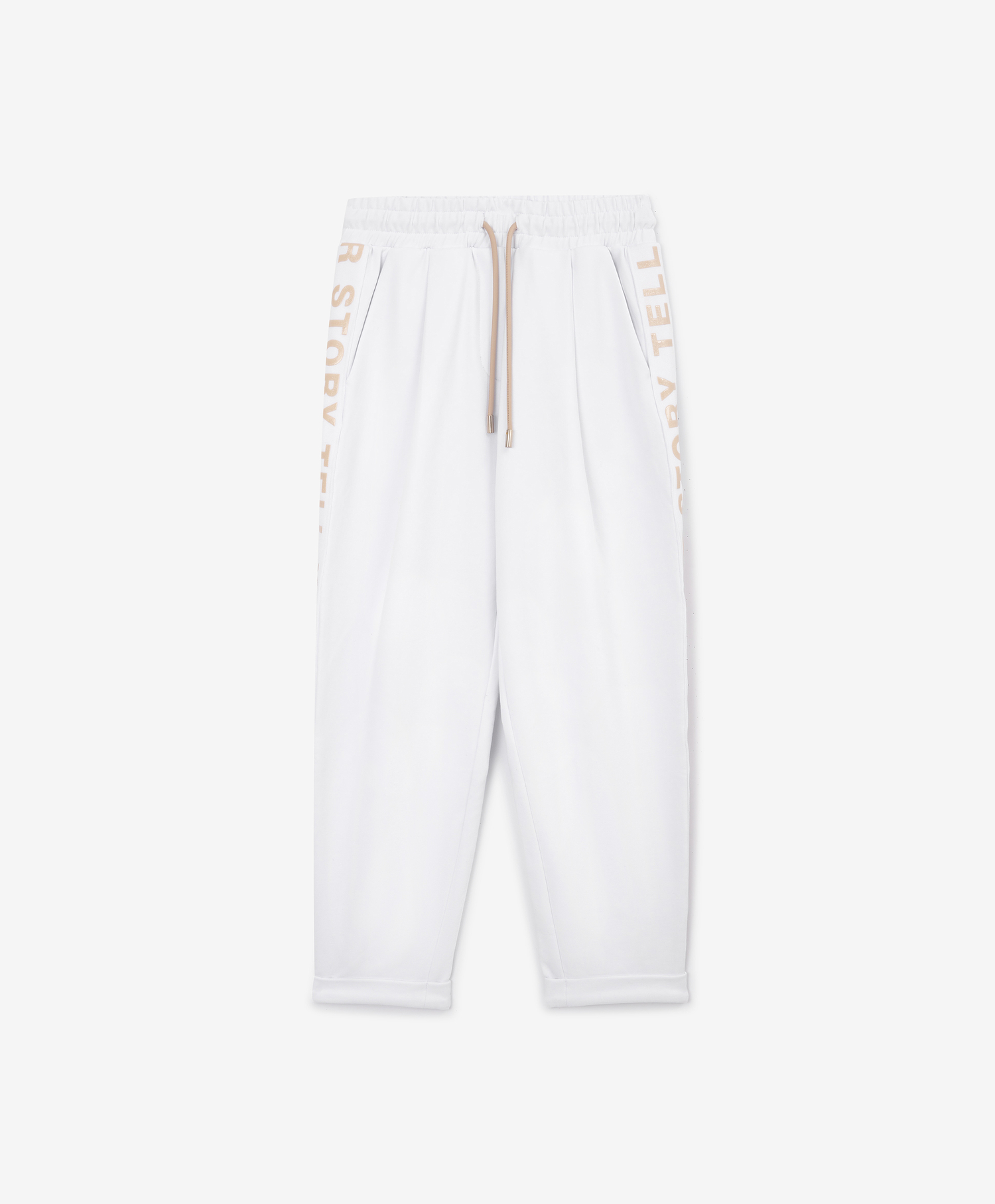 Брюки трикотажные с защипами и декором цвета светлое золото белые для девочек Gulliver (140) детям