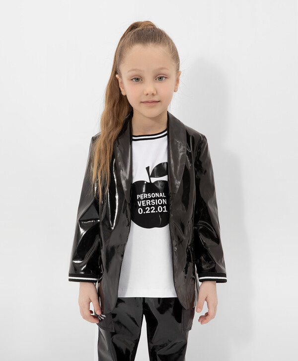 Пиджак из лаковой эко кожи с асимметричным принтом черный Gulliver (98) 12201GMC4801