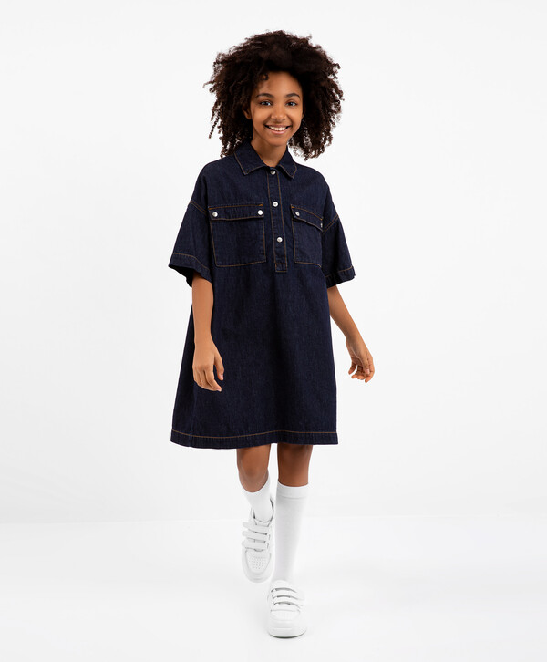Платье-рубашка из тонкого синего денима синее Gulliver (146)