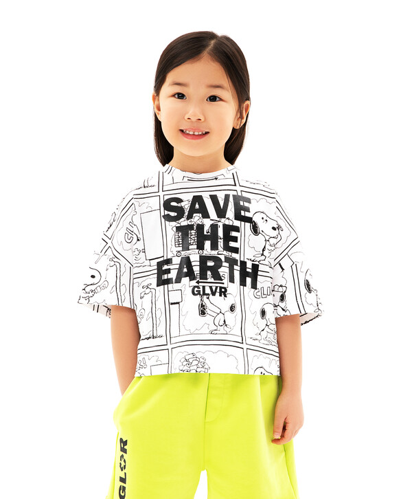 Футболка оверсайз с принтом Спаси Планету белая Gulliver (146) 123GLVRGC1201