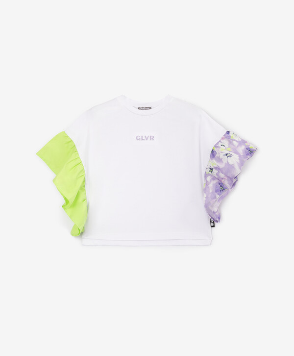 Футболка оверсайз с широкими оборками по линии проймы белая для девочки Gulliver (104) детям