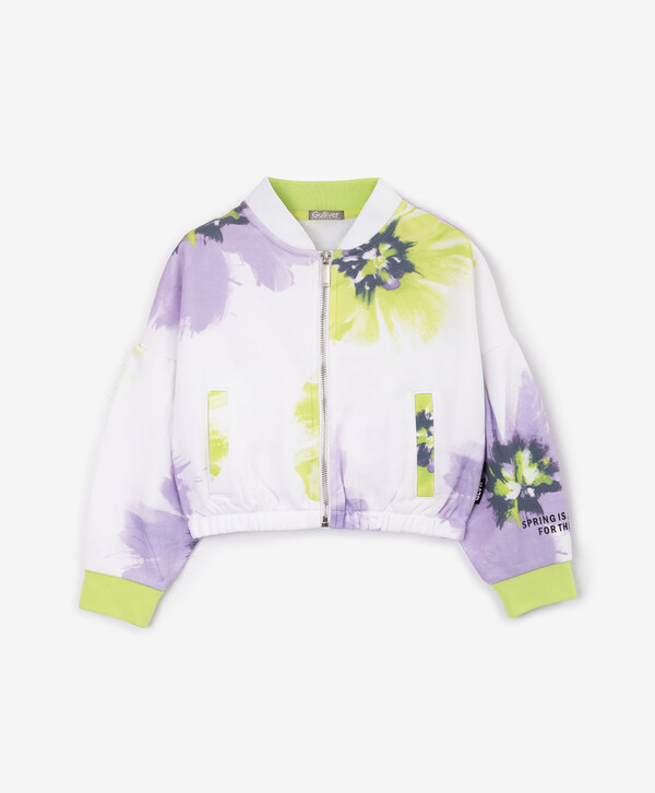 Толстовка укороченная с крупным фантазийным цветочным рисунком мультицвет для девочки Gulliver (98) детям