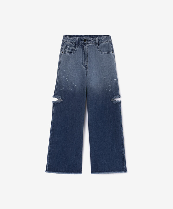 Джинсы силуэта палаццо с дестрой эффектом синие для девочек Gulliver (140) 12408GJC6306 детям
