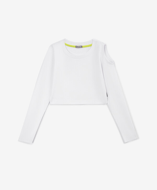 Кроп-топ с "каплей", обнажающей плечо белая для девочки Gulliver (146) детям