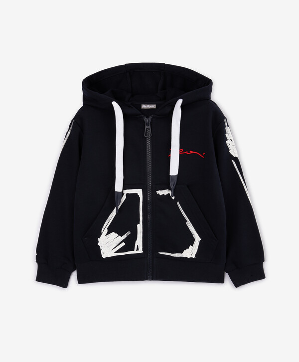 Толстовка распашная с фактурным принтом черная для мальчика Gulliver (128)